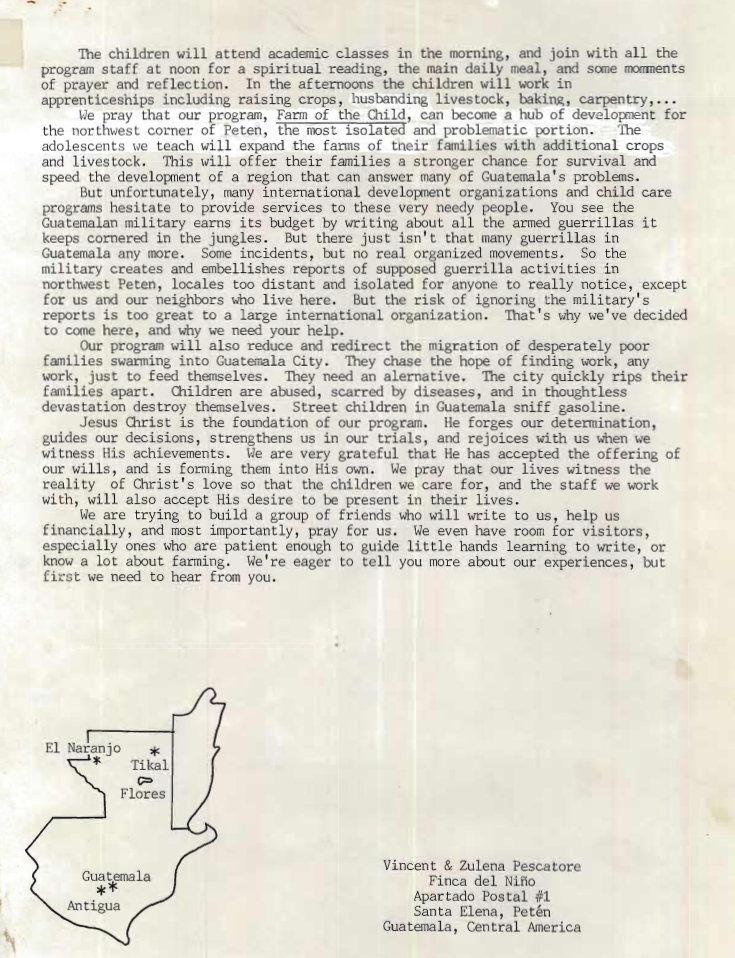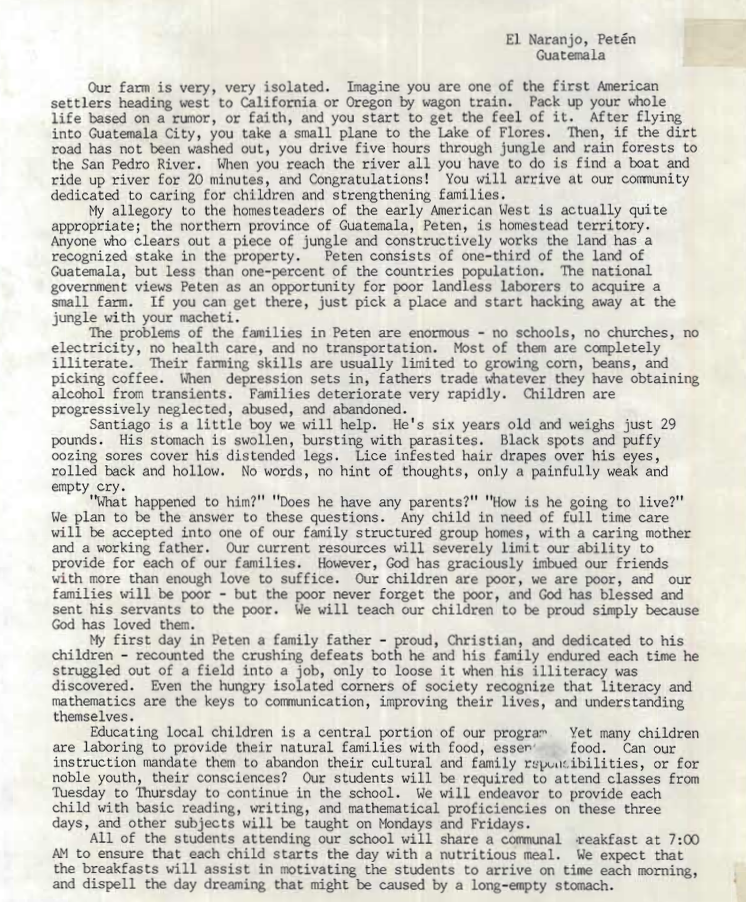 We have two weeks left of Lent and we just have two more letters from our past 30 years to share with you. This one is one of our favorites. In our files, it is simply found in the 1986 folder of letters and titled "01-Undated." Reading what we believe to be his first letter to friends and potential supporters, we are inspired by his invitation to all of us who who are part of the Farm of the Child community.